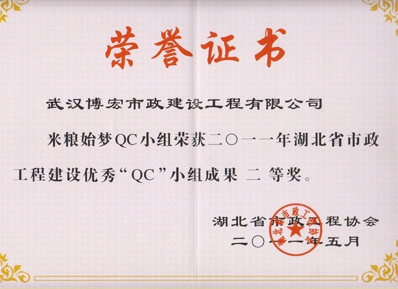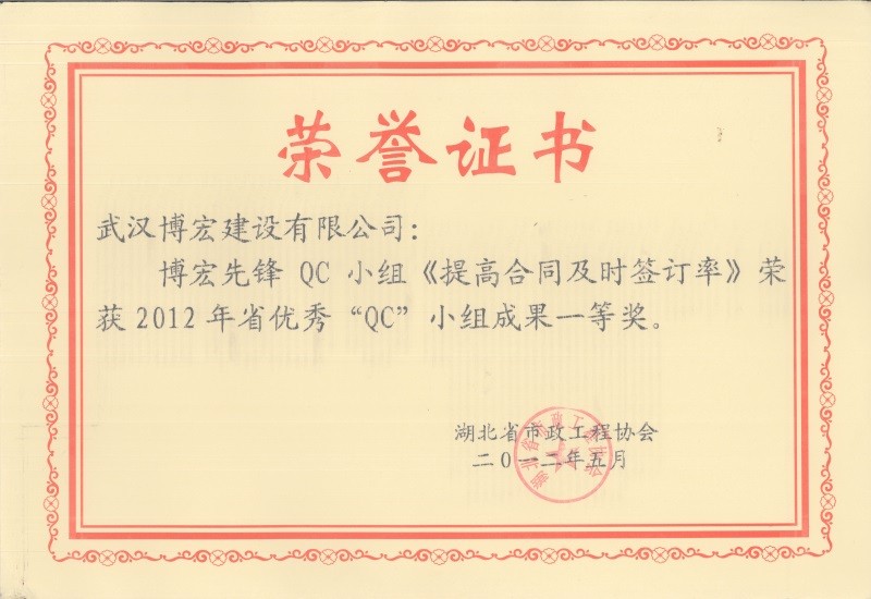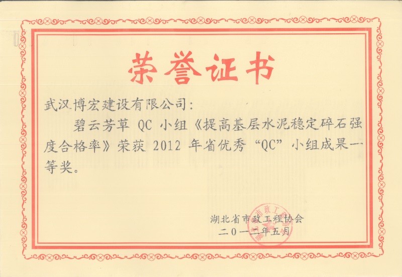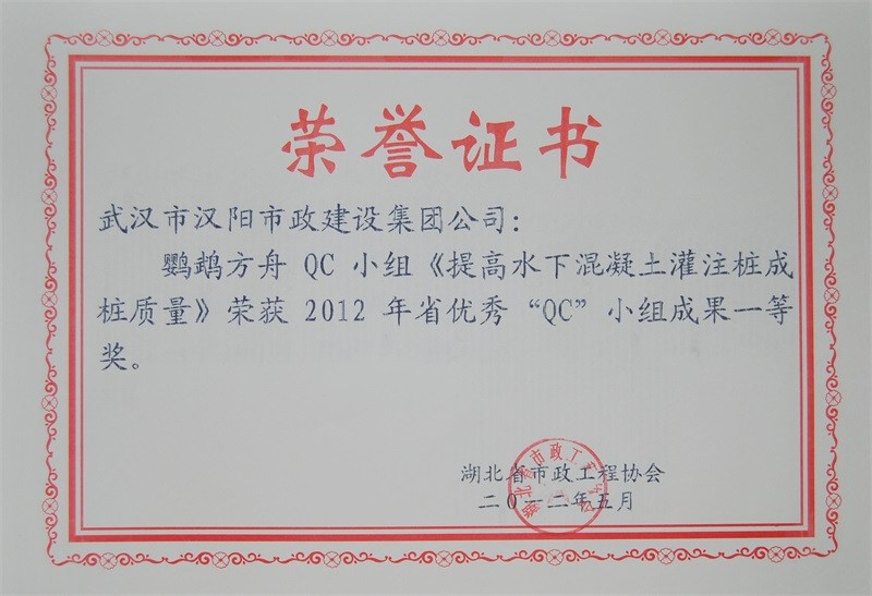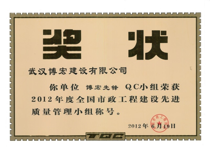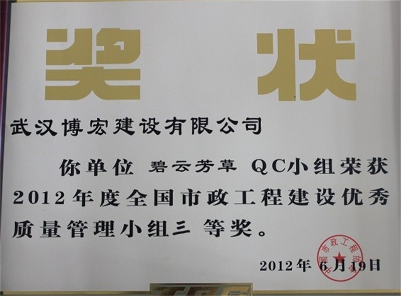 2012年度全国市政工程建设先进质量管理小组