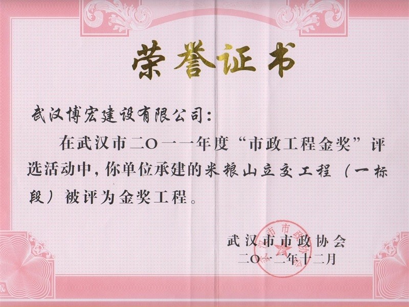2011年度武汉市市政工程金奖(米粮山立交工程一标段)