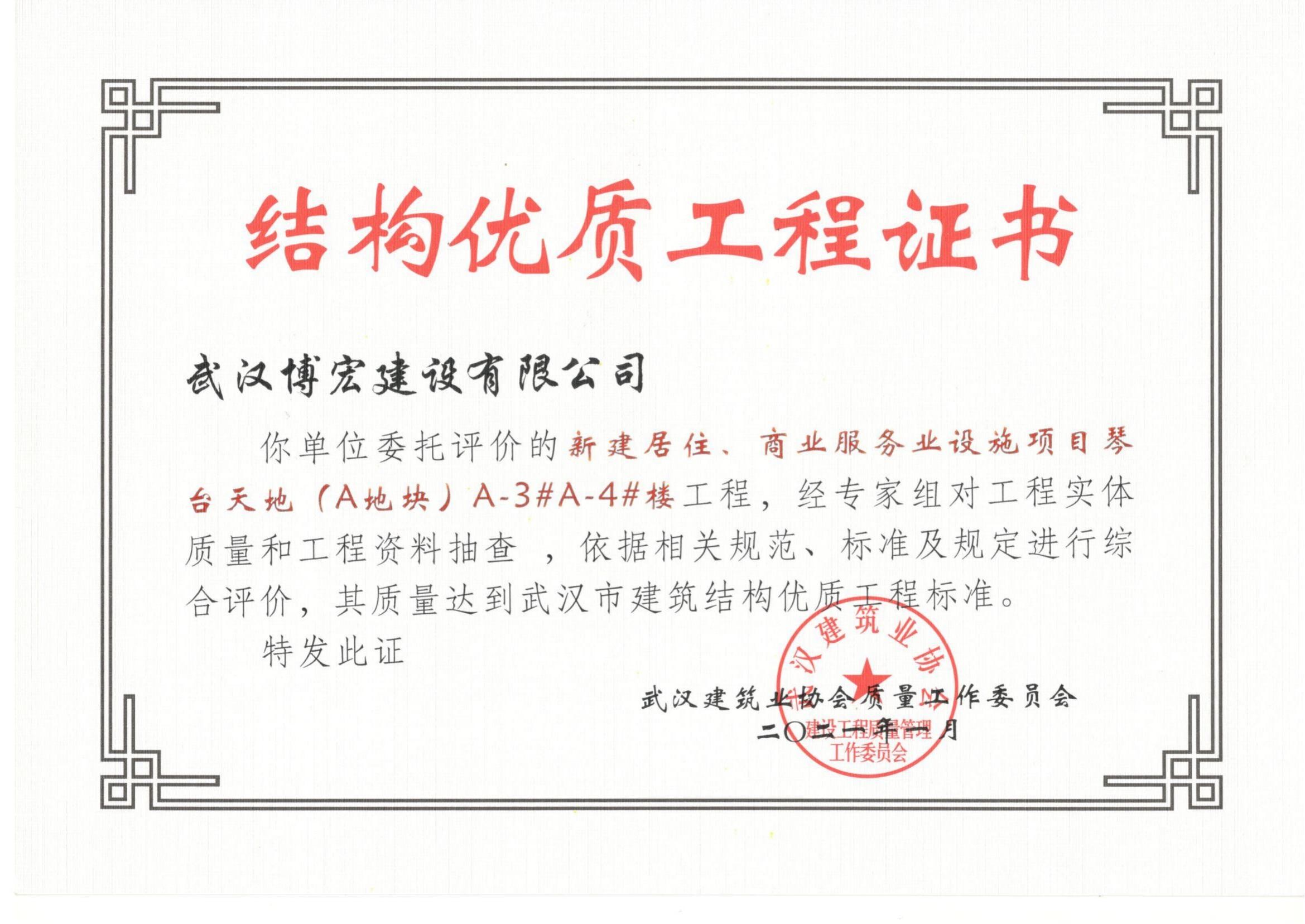 琴台天地(B地块)二期B-1#楼武汉市建筑结构优质工程