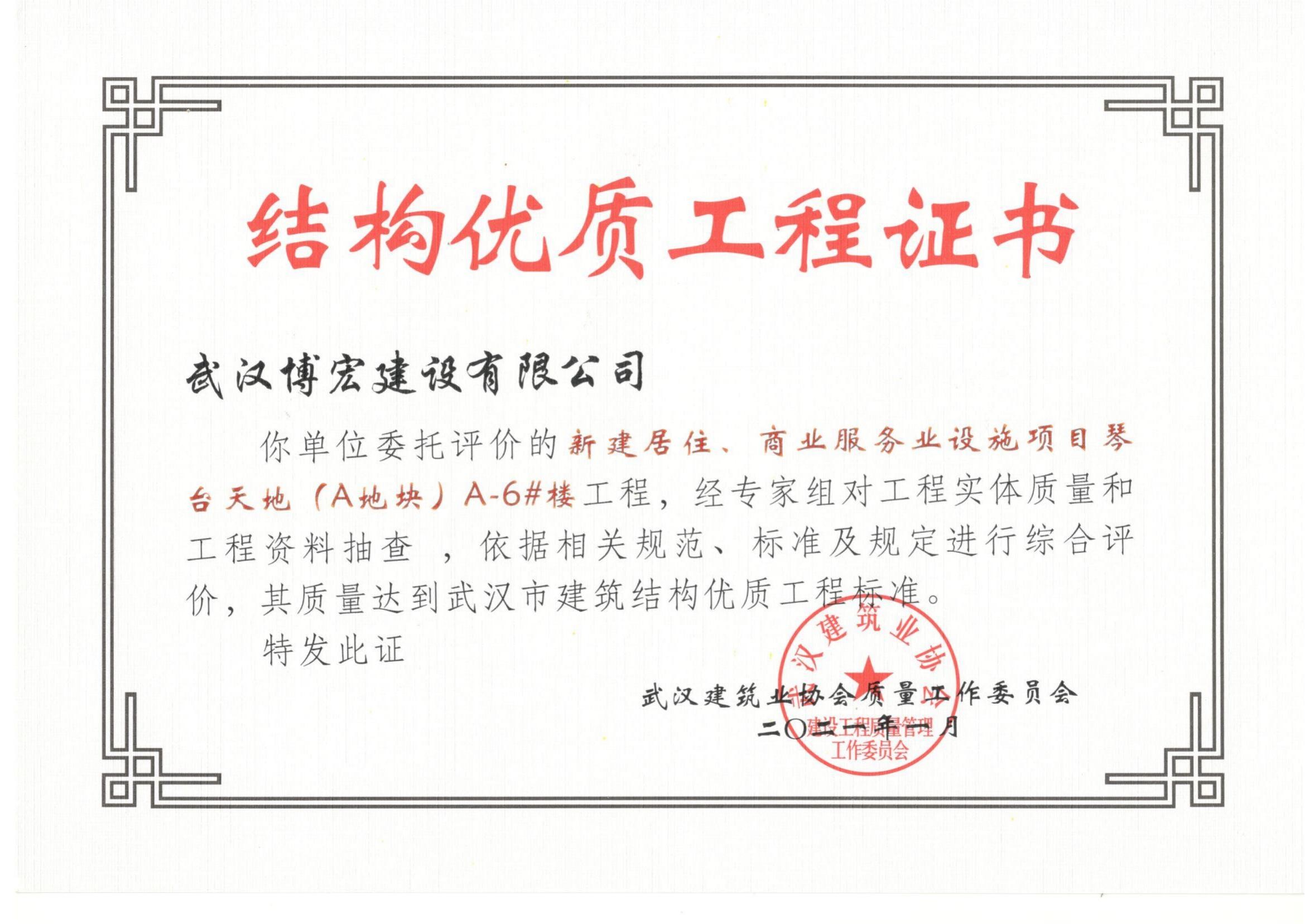 2021年武汉市结构优质工程(琴台天地(A地块)6栋