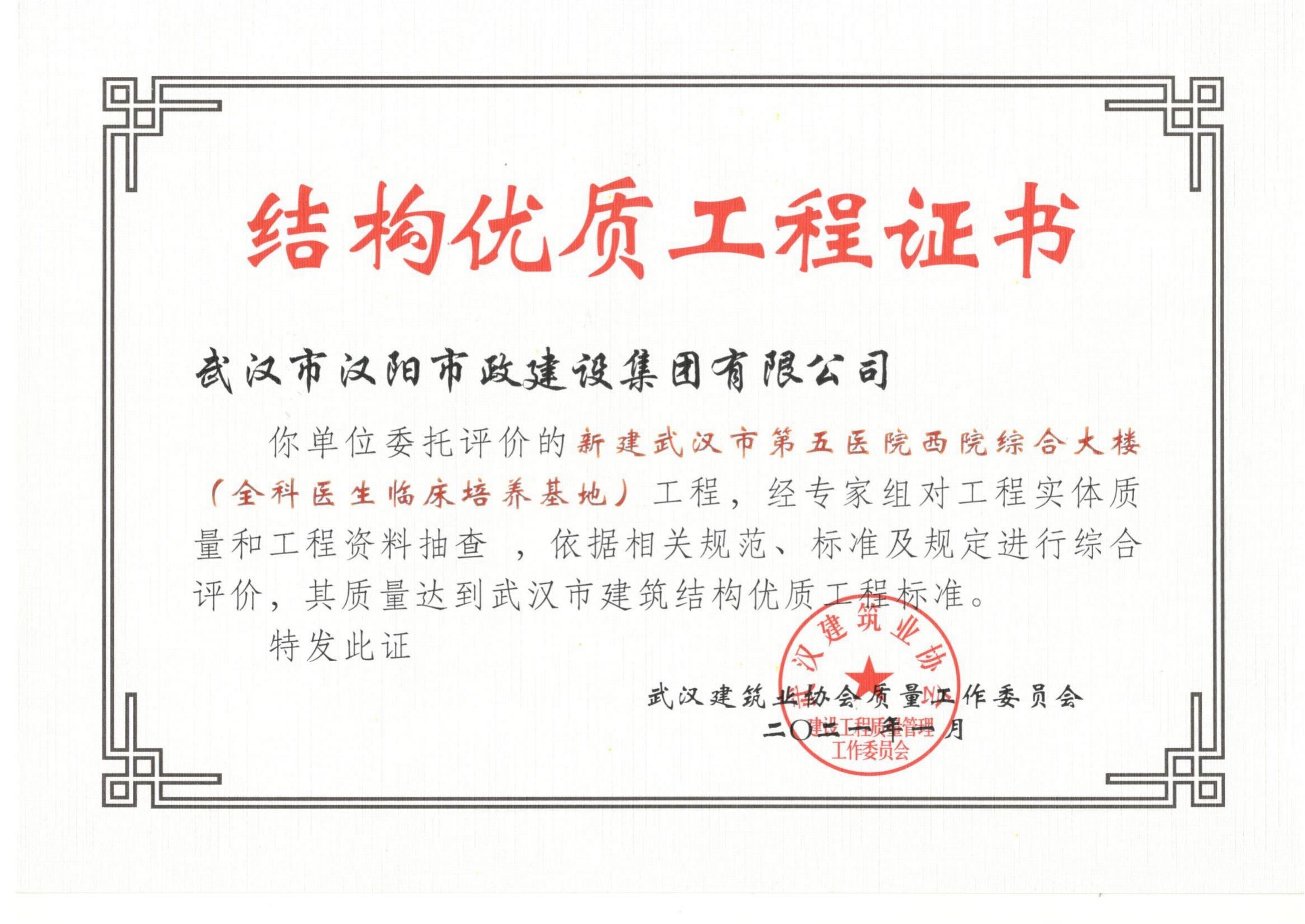 2021年武汉市结构优质工程(新建武汉市第五医院西院综合大楼)