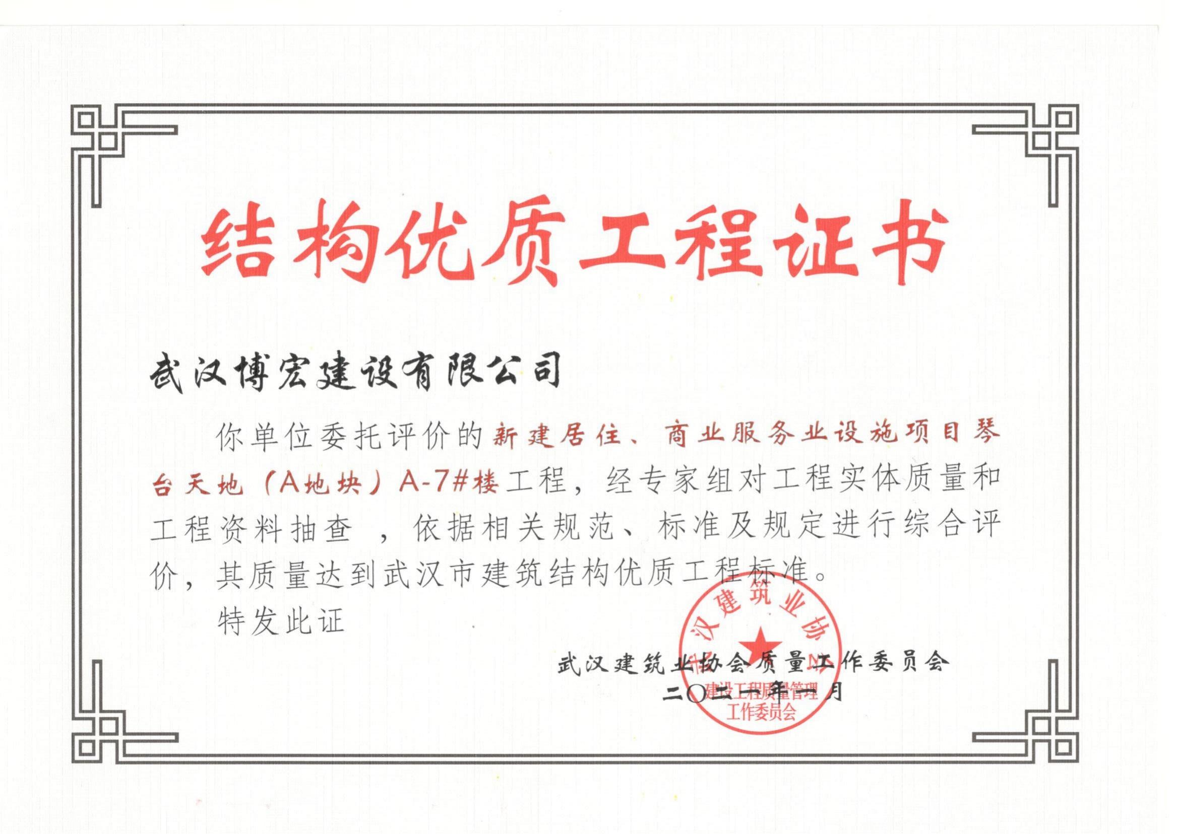 2021年武汉市结构优质工程(琴台天地(A地块)7栋