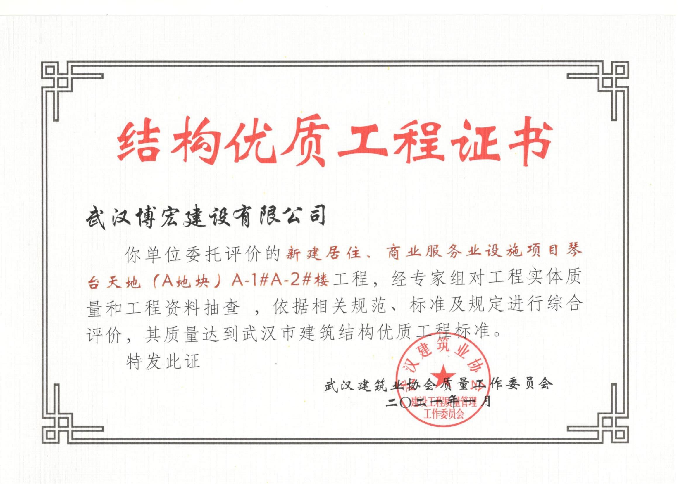 2021年武汉市结构优质工程(琴台天地(A地块)1、2栋