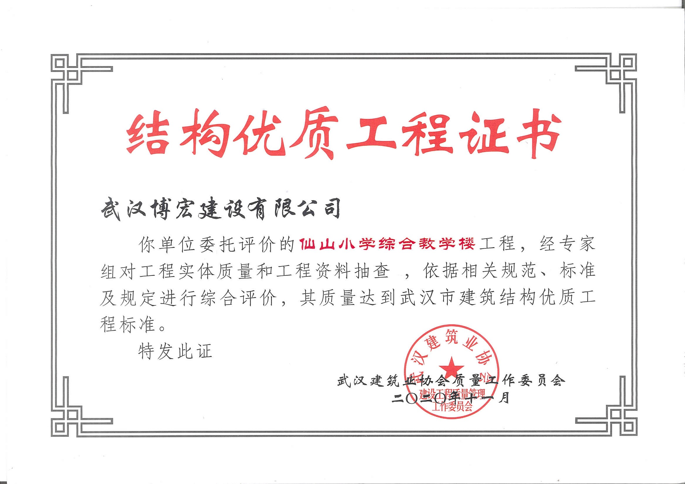 武汉市建筑结构优质工程(仙山小学综合楼)