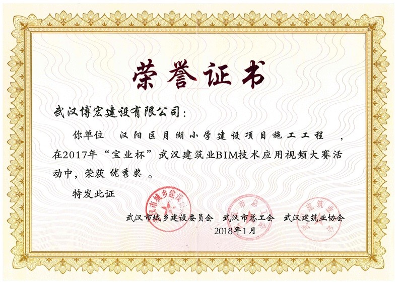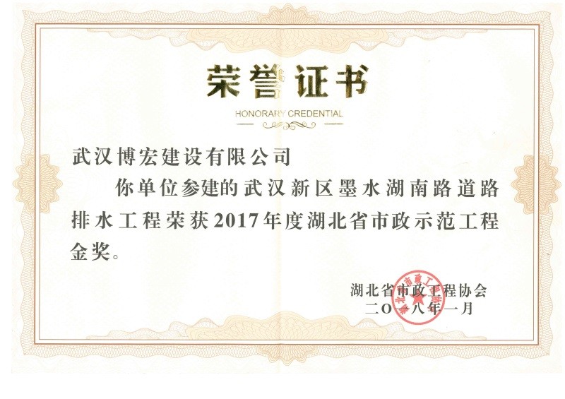 2017年度湖北省市政示范工程金奖(墨水湖南路道排)