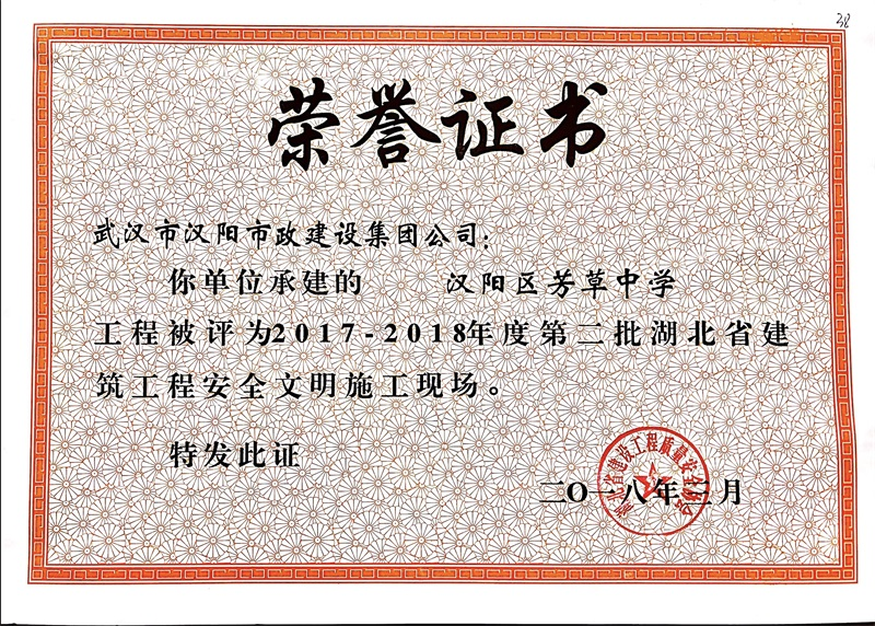 2017-2018年度第二批湖北省建筑工程安全文明施工现场(汉阳区芳草中学)