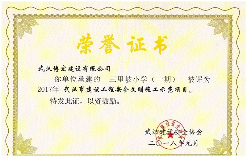 武汉市建设工程安全文明施工示范项目(三里坡小学)