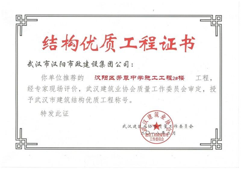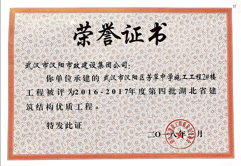 2016-2017年度第四批湖北省建筑结构工程(武汉市汉阳区芳草中学施工工程2#楼)