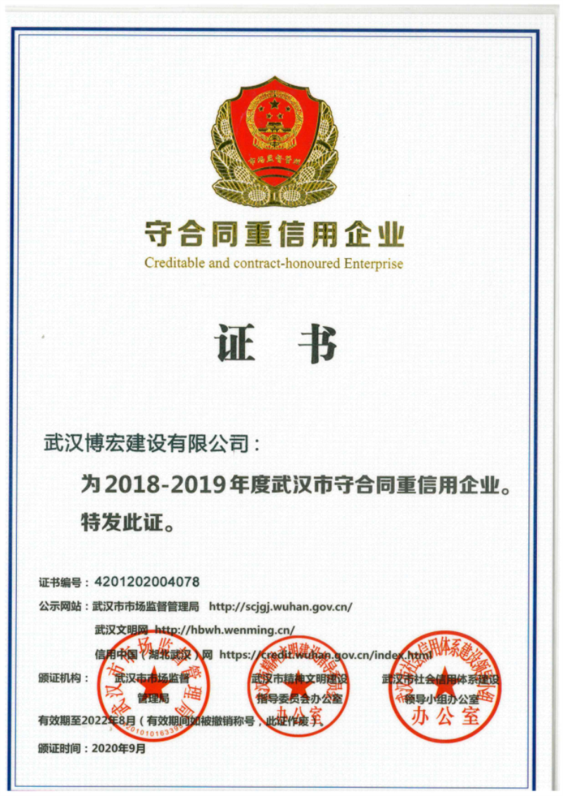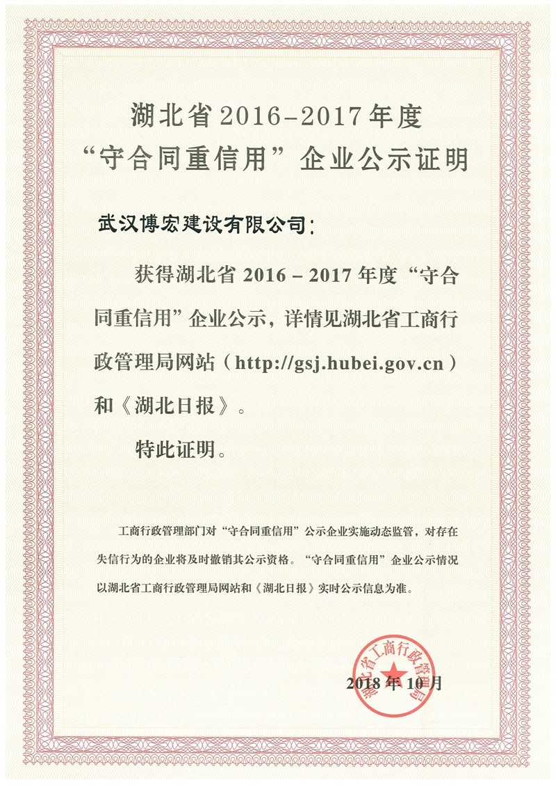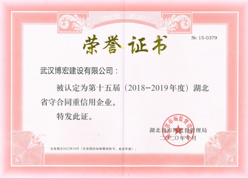 十五届(2018-2019年度)湖北省守合同重信用企业