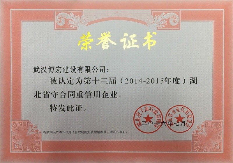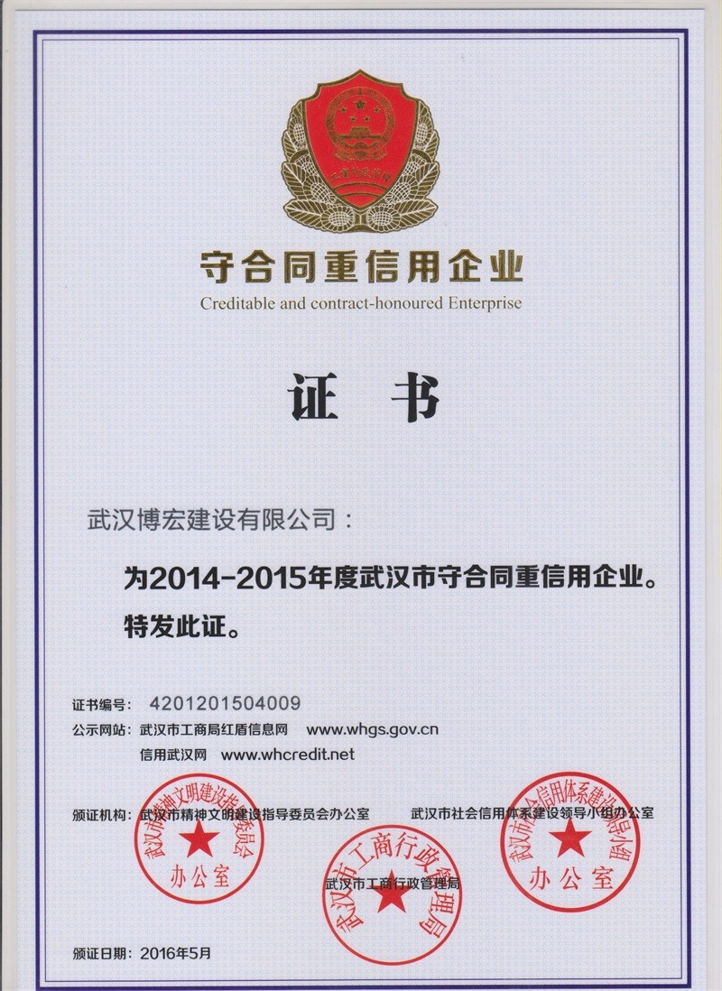 2014-2015年度湖北省守合同重信用企业
