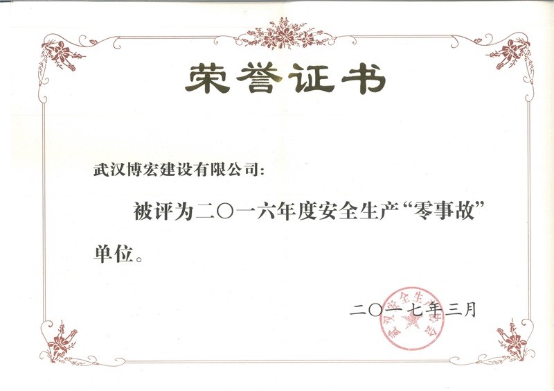 2016年度安全生产“零事故”