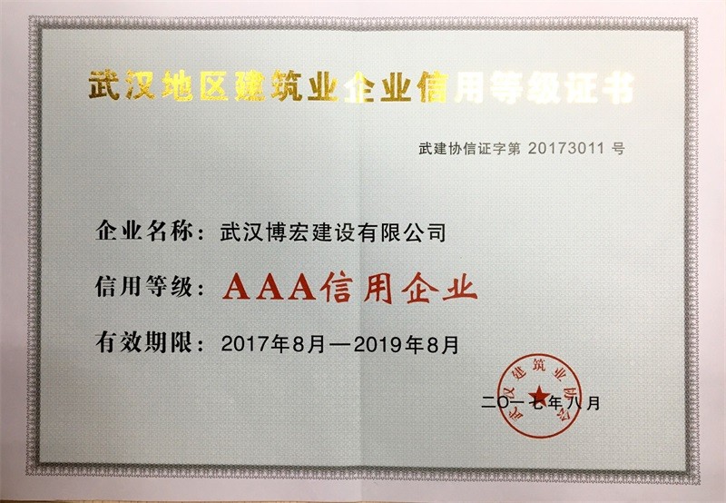 武汉地区建筑业企业信用等级证书2017-2019年度