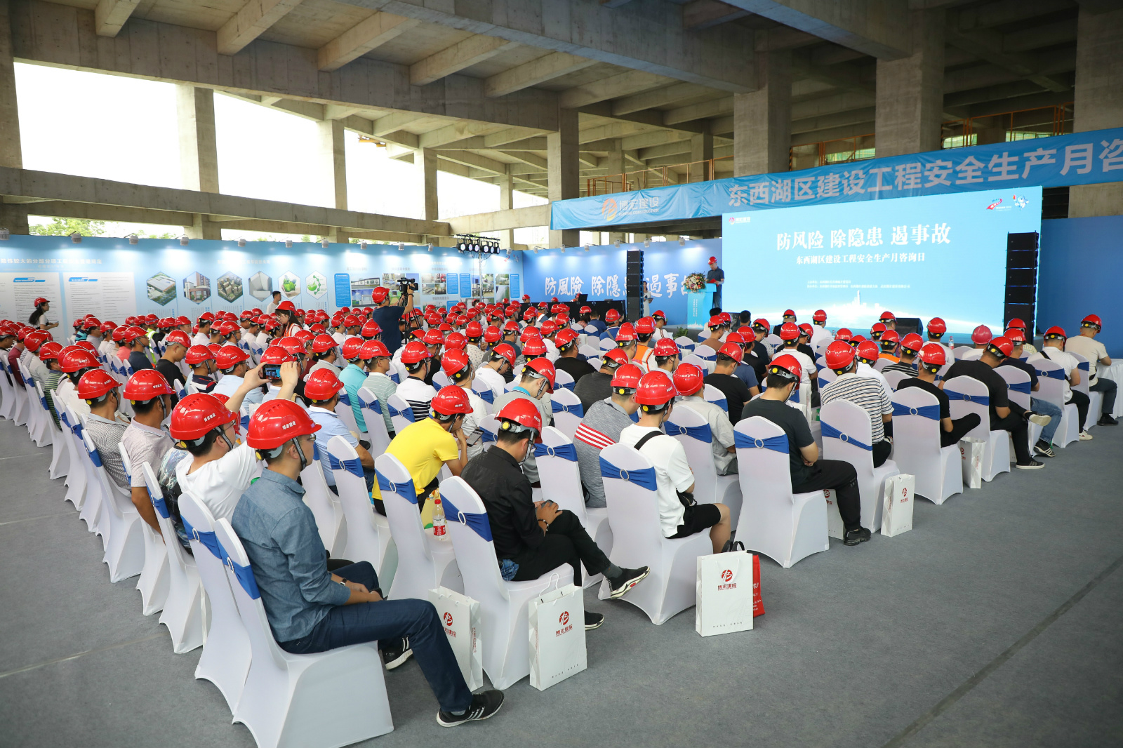 6月16日,东西湖区属建筑施工企业和在建工程管理人员共计260余人相聚在武汉食品检验检测中心项目现场,通过观摩现场安全文明情况、领取安全文明手册、咨询安全管理问题、问卷调查、观看安全生产警示教育片等方式共同参与到本次安全生产月活动中来。此次活动呈现两大亮点:一是播放宣传片更加贴近生活,往年的宣传片,多半是建筑施工安全、消防安全等传统教育类视频,今年活动围绕安全生产和文明施工,专门制作了《防线》、《体育中心安全文明》、《创杯项目锦集》三部宣传片,展示了武汉市优质大型项目在施工管理上的好做法,使来宾能从中找到共鸣;二是新增了现场问卷答题,更注重互动性与参与性,答完题后邀请专家现场解答互动,对安全管理的工作疑虑进行了有效沟通。
